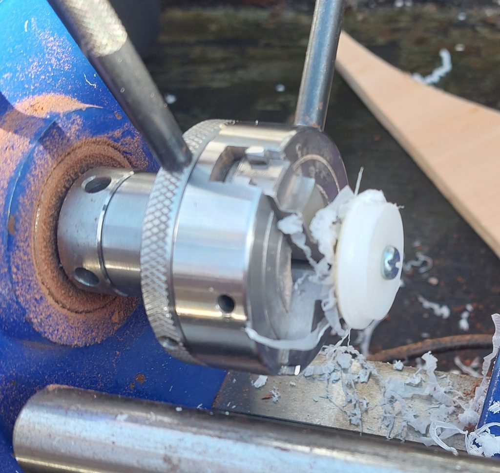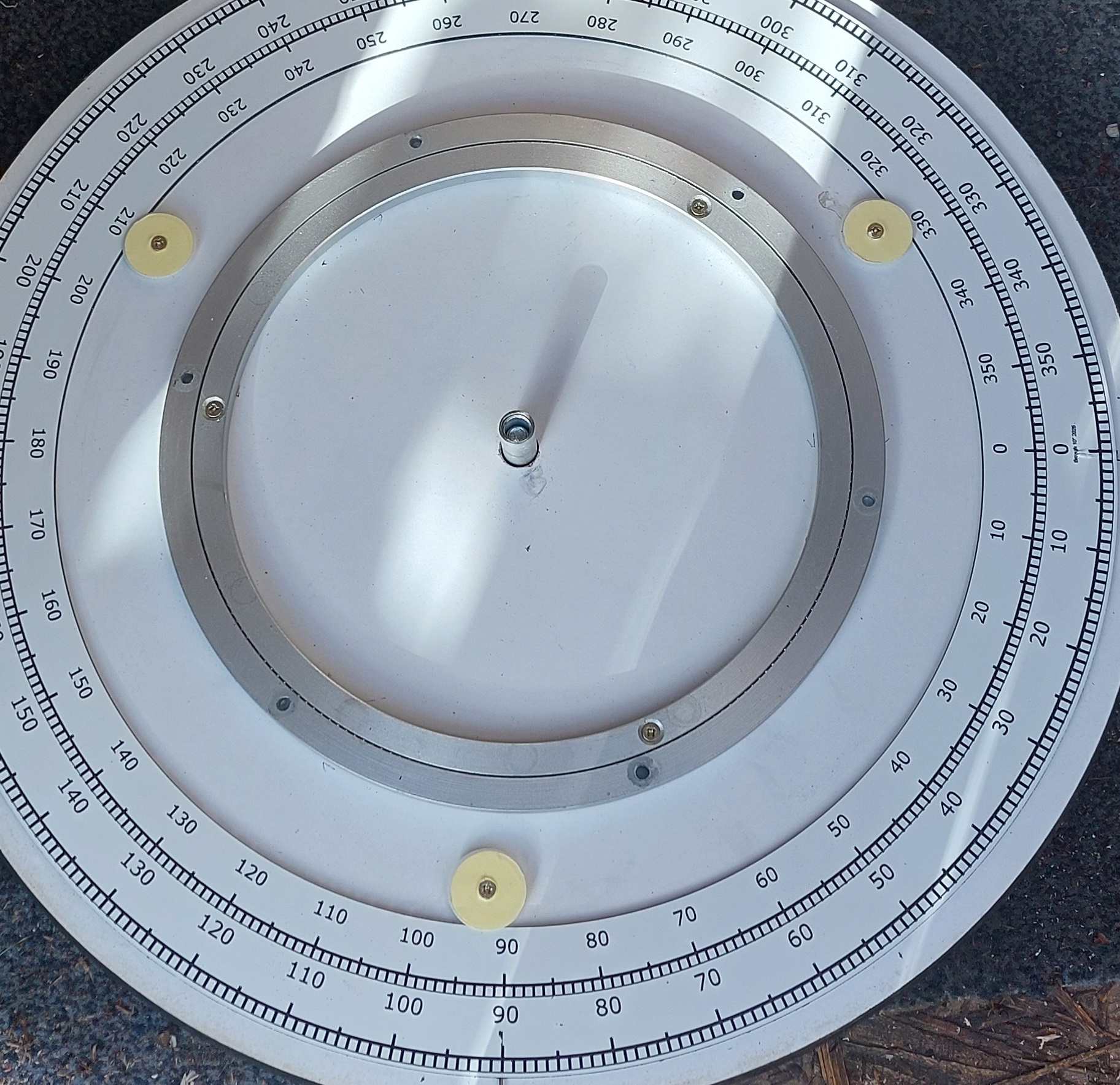 I machined buttons out of teflon. Three buttons are enough to allow a setting circle to rotate. You can of course use real buttons. Anything smooth enough, and the lip on top can be a larger washer, to keep the setting circle in place.